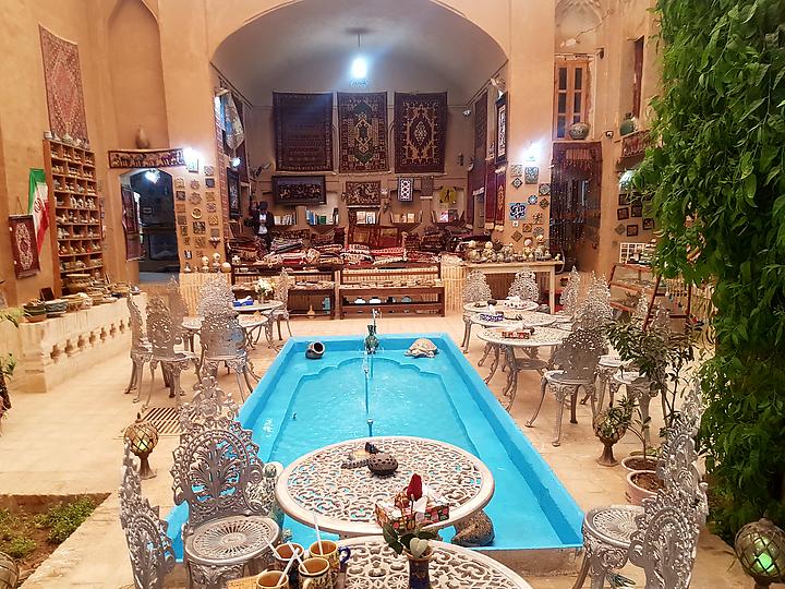 Kitą dieną su savo naujuoju draugu apėjom miestą, apžiūrėjom net 4000 metų prieš Kristų statytą pilį. Protas nesuvokia, kaip taip gali būti, kai Lietuvai iš viso tik apie 1000 metų. Atsibučiavę ir apdalinę jį dovanomis (tradicinis lietuviškas medus su serbentais), vykstam į kitą miestą – Jazdą. Čia nė vieno balto žmogaus, bet miestas pasakiškas. Didingos šventyklos, spindinčios namų galerijos, didelis ir vėl kitoks turgus. Deja, jo pagrindas buvo uždarytas, nes buvo ketvirtadienis. O Irane savaitgalis – ketvirtadienis ir penktadienis, o šeštadienis ir sekmadienis – eilinės darbo dienos. Čia pirkom skaniausių pasaulyje datulių, tirpstančių burnoje. Tai patvirtino ir jų paragavę draugai, nes partempiau 2 kg datulių namo. Neatsispyrėm vėl užsiropšti ant aladiniško stogo ir išgert arbatos besimėgaujant vaizdais. Pietūs buvo dar ant kito stogo, įrengto lounge. Buvo tikras malonumas tokioj vietoj praleisti pora valandų po saule, kai tuo metu Lietuvoj kovo mėnesį lijo. Einant per turgų prie mūsų priėjo keletas porelių ir dovanojo dovanas. Lietuviško mąstymo žmonėms tai labai jau keista buvo, kaip gali prieiti nepažystamieji ir dovanoti dovanas. Tai buvo suvenyrai, išpuošti veidrodėliai ir kita. Būdami Irane, pradėjom ir mes kitaip į viską žvelgti. Savo šaltą susikaustymą padėjom į šalį ir mielai su visais sveikinomės ir glebėsčiavomės. Dar ir nemažai gavom bučkių į žandus. Aišku, iš vyresnių vyrų, nes moterim mus kalbint draudžiama. Pradžioj buvo keista, bet jei pora dienų nesibučiuodavom, tai net norėdavosi bučinio. Numyluoti ir su dovanom vykstam į naują kanjoną. Google maps pagalbos dėka dykumoj nepasiklystam. Vairuodami gerai prisivalgom dulkių, nes kovinis Renault visas skylėtas. Toliau laukia 7 valandos vairavimo ir 2 salos, kurių kraštovaizdis iš esmė skirsis nuo viso Irano. Pakeliui sustojam Shahzadeh istoriniuose soduose. Vietiniai vaikai laksto aplink fontanus, medžiai pradeda žaliuoti. Pamažu ateina pavasaris ir čia. Taip pat mum pakeliui yra viena didžiausių pasaulyje citadelių, pastatytų iš molio. 2003 m. ją apgadino žemės drebėjimas. Sassanido eros laikais ji stovėjo šalia prekybinio kelio, todėl buvo labai svarbi. Joje kaldavo kardus, peilius ir kitus ginklus. Užsilipau į ginybinį bokštą, tai vaizdai pasakiški. Fone kalnai, leidžiasi saulė. Tokia rami atmosfera aplink.