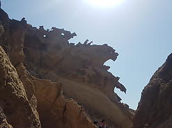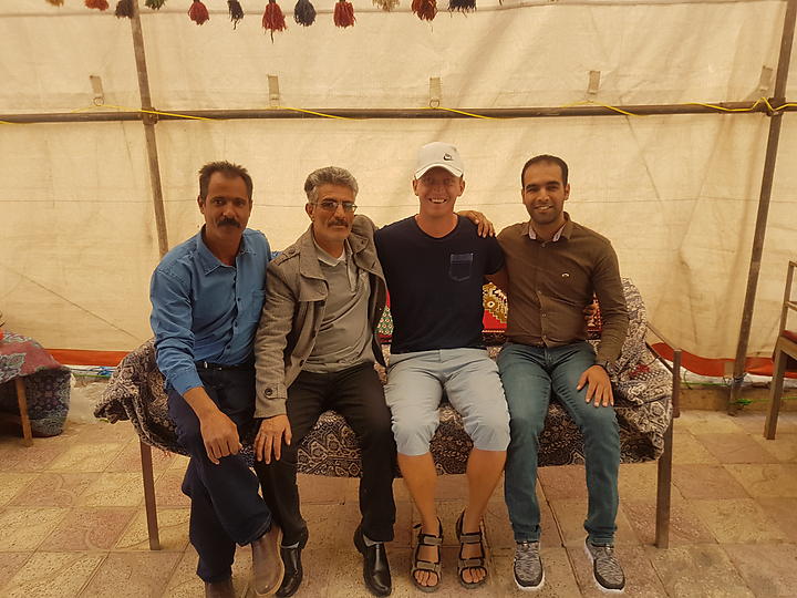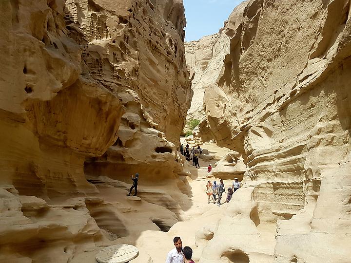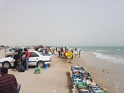 Sunkiausia gal buvo priprasti išvažiuoti iš žiedo šalutiniu keliu. Naktį važiuojantys be šviesų ar priešpriešiniu eismu autostradoje kažkaip nestebino. Pavežiojom savo naujus draugus kartu dienelę, pavalgėm pas vietinius ant vištidės, po to mūsų keliai išsiskyrė. Sala prieš kelis šimtus metų iškilo iš jūros dugno, bejudant plokštėm, todėl gamta buvo visai kitokia nei žemyniniam Irane. Dykumoj gulėjo didžiulės kriauklės, keistai išplautos uolos, druskų urvai. Vieną dieną užėjo smėlio audra, kaip tik tą, kurią mes suplanavom mėgautis jūra. Matant tokią žydrą jūrą, būtų nuodėmė joje nesimaudyt. Iraniečiai irgi labai mėgsta jūrą. Pasidėję pledus ir maistą, sėdi sau ant kranto ir nesvarbu, kad audra pučia smėlį į akis. Važiuodami per salą pro vieną kaimelį matome, kad nepravažiuosime, kelias užtvertas. Pasirodo vyksta kažkokio iranietiško filmo filmavimas. Pasistatėm automobilį, ir iškarto mum išlipus, prie mūsų prieina už kelio užtvarus atsakingi asmenys. Pamatė, kad mes turistai, mus nusivedė į filmavimo užkulisius. Supažindino su režisierium, pagrindiniais aktoriais. Aišku pasipylė „selfiai“. Gavom arbatos, sausainių, visi su mumis fotografuojasi, pasakoja apie savo filmą. Stovim lengvai apšalę. Pasijautėme, kaip to filmo žvaigždės.