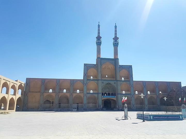 Meibod miestas. Čia, hostelyje, buvo apsistojęs vienas iranietis ir mes. Iranietis gerai kalbėjo angliškai ir mums pasiūlė vakare kartu su juo eiti pasivaikščioti po miestą. Jis jau čia gyveno apie porą savaičių ir viską gerai žinojo. Mus bevaikštant pavaišino ledais, užpiltais sultimis. Beje, sulčių spaudyklų Irane ant kiekvieno kampo. Skaniausios yra granatų ir kaina perpus pigesnė, nei, pvz., Stambule. Vėliau užėjom į labai įdomią vietelę, kurioje tik įėjusius mus iš karto pavaišino kava su sausainiais. Čia, sporto salėje, – tradicinis iraniečių sportas – Freestyle Wrestling- Zoorkhāneh. Jis anksčiau buvo skirtas ruošti kariams. Pagal pavadinimą, gal nėra tiek panašus į imtynes, kiek į svarmenų kilnojimą ir mankštą su svarmenimis. Salės pakyloje sėdi būgnininkas ir traukia dainą. Ta daina skirta įkvėpti sportuojančius. Taip pat jos žodžiai skirti diegti teisingas šeimos ir gyvenimo vertybes. Pakilnojus „kuvaldas“, prasideda šokiai-suktukai. Įdomu pažiūrėti, kaip įvairaus amžiaus vyrai sukasi, tarsi žaislinis vilkelis. Dabar tarp jaunimo šis sportas nebėra populiarus.