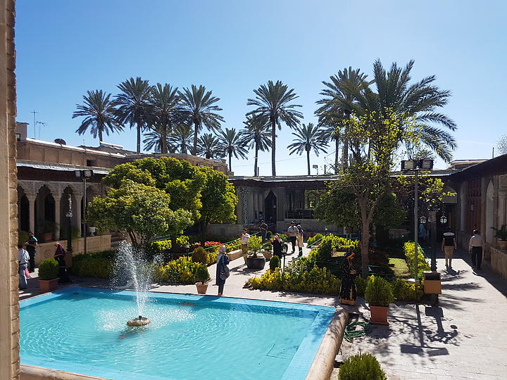 Paskutinė diena Irane. Shiraze aplankom daug gražių objektų. Rožinę mečetę, kurios virtražiniai langai yra miesto vizitinė kortelė. Eramo žydinčius sodus su daugybe išpuoselėtų palmių. Istorinį turgų, kurio vidinėse aikštėse auga pilni vaisių apelsinmedžiai. Nuostabus turgus, pilnas vietinių rankdarbių, nuostabūs žmonės. Iraniečiams šiandien Naujųjų metų atostogos, objektai pilni poilsiaujančių iraniečių. Po pietų apsilankom Qalat kalnų kaimelyje. Labai savitas šalia Shirazo esantis senovinis kaimelis. Ant stogų įrengtos terasėlės, kuriose galima išgerti arbatos ir pasigrožėti atsiveriančiais vaizdais.
