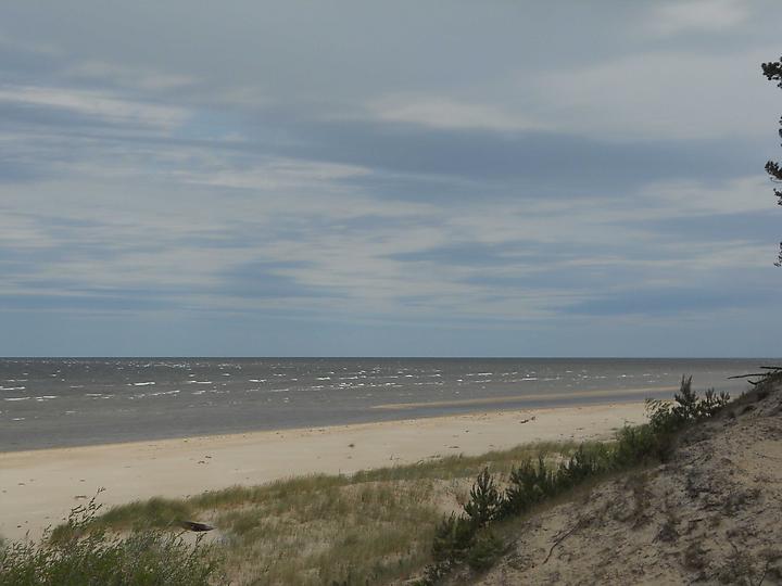 Besivartydamas pramiegojau rytą. Į kelią apie 09.20h. Dvejojau ar sukti į Saulkrastę – bet visai nieko ta „Balta kopa“, upeliukas ir pats miestas. Paskui – į trasą (Talino), dar aplankiau Miunchauzeną. Šiandien vėjas nepalankus, buvo sunkoka. Nuvažiavau apie 63km, esu nuo Salacgrivos apie 63km, visai prie jūros. Triukšmas nuo kelio. Rytoj jau pasieksiu Estiją.