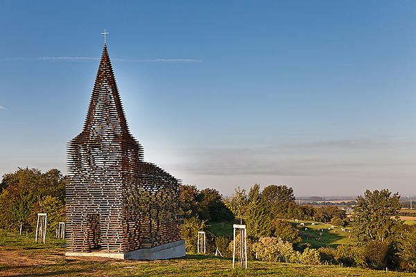 10 metrų aukšio konstrukcija savo forma primena nedidelę bažnyčią.