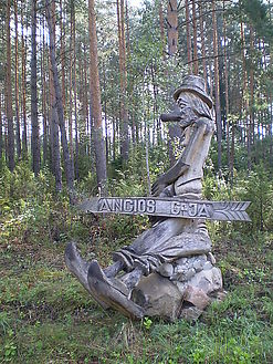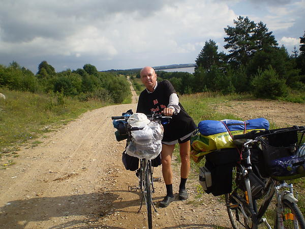 Ryte ilgai nesilepinome – pusę septynių jau mynėme pedalus. Lijo iki devynių ryto, o ir dieną karts nuo karto, kai netingėjo ;)Iki Kapčiamiesčio teko nemažai paklaidžioti. Sunkiai sekėsi rasti Baltosios Ančios vandens jėgainę, klaidu palei pačią upę – Dzūkija, gi Macevičių kaime stojame pusryčiauti. Netrukus pro šalį žingsniuoja vietinis, jau „šiltas“, matyt dar iš vakaro 😉 Užkalbina, pasiglebeščiuoja su Vyteliu, lyg seni draugai ir primygtinai liepia palaukti kol parsineš iš kaimyno ruginukės…o tada jau pas jį į svečius, dviračius į daržinę… ir sudie proteli :-DDD Pažadėję suskubome valgyti ir pabėgome. Atleisk svetingas dzūkeli, tiesiog bijojome prarasti dieną – žinai, kaip kartais „stabdžiai atsako“ Keliukai minkšti, smėlėti, smagiai besirangantys pušynais. Likus šešiems kilometrams iki Kapčiamiesčio išlendam į platų, neįdomų, žiauriai „tarkuotą“ vieškelį. Kapčiamiestyje pasisukinėjame po centrelį, apžiūrim bažnytėlę, paminklą Emilijai Pliaterytei. Apsiperkame, aš susgeriu alaus bokaliuką ir sukame link Kalvių. Vėl smėlėti keliukai, miškai, kalniukai. Nelengva. Kučiūnus randame ne be vietinių pagalbos. Pietaujame. Klausomės įkyraus „šilto“ čiabuvio erudicijos, kuris atstojo tik kai vėl pradėjome minti – liūdna čia jiems matyt :-D. Nuo Lazdijų muitinės iki Kalvarijų muitinės maršrutas driekėsi prie pat sienos ir tą atkarpą pavadinome ‚linksmieji kalneliai“. Prastas arba labai prastas keliukas, matyt anksčiau buvo skirtas tik pasieniečių džipams rėplioti, su žiauriomis įkalnėmis, nuokalnėmis, išgriaužomis. Viso apie 18 km. Sunku, labai . Stabdžių beveik nebeliko. Priekinio bagažo viela nutrūko. Atramos kojelė atsipalaidavo. BEKELĖ. Žiauriai pavargę, ties Berezninkų kaimų, pusė aštuonių vakaro, šabarkštyne, stojome nakvynei, rytojui palikę apie 10 km. „linksmakalnių“ ;). Įveikėme 95 km.