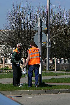 Valomi , plaunami kelio ženklai.
