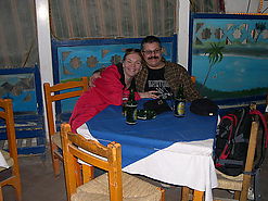 Bet užtenka tų sentimentų, einame prie reikalo. Dar net nepasidėję daiktų kambariuose, gavome gana ilgą ir išsamų instruktažą, ką, kur ir kaip, bet instruktažas instruktažu, o kol nepatirsi savo kailiu, nieko nebus. Įsikūrę, pirmiausia nuėjom išsimaudyti jūroj, visgi pirmas kartas vasario mėnesį maudytis. Vanduo apie +20 C, krantas pilkšvo smėlio, o ant smėlio Palangos pliažo filialas, daug apgėrusių lietuvaičių ir rusų. Po maudynių pirmas išlindimas į miestą. Prasiėjom pagrindine gatve keletą kilometrų. Aplinkui vykstantį bardaką ir kičo šventę sunku nupasakoti, todėl ir nepasakosiu. Suradom barą prekiaujantį alumi, pasiėmėm po butelaitį, šeimininkas puolė mus fotografuoti, bet, keista, nepaprašė “bakšišo”, todėl mes iš jo dar nupirkom pilną kuprinę alaus, ūkyje pravers, ir tikrai pravertė. Kadangi, kaip ir visur pietuose temsta akimirksniu, tai grįžinėjom jau sutemus. Netoli nuo viešbučio užsukom į vienintelį Hurgadoje “šnapsyną” pasipildyti atsargų, nes buvom įspėti , kad tai padaryti galima tik kartą ir per parą nuo atvykimo, kaip yra iš tikrųjų nesiaiškinom, bet pirkimo procesas sužavėjo. Prieini prie prekystalio ir sakai pardavėjui – noriu to, to ir to, jis pakeverzoja kažką ant lapelio ir siunčia pas kitą pardavėją, kitam parduotuvės gale, šis dar kžką pakeverzoja, paima pinigus ir siunčia dar pas vieną, tas uždeda spaudą į pasą, tipo, šitas jau apiprekintas, ir siunčia atgal pas pirmąjį, kuris paduoda to, to ir to. Teisybės dėlei reikėtų pastebėti, kad tos parduotuvės be tikslios žinančių nuorodos surasti be šansų, nes iškabos nėra, joje prekiaujama dar ir kažkokiom padėvėtom skalbimo mašinom, o spiritinių patiekalų pasirinkimas apsiriboja kokia dešimčia pavadinimų, ir viena rūšimi “Heineken” alaus, (bariuke pirkom vietinį Egiptietišką ir tikrai neblogą). Degtinės ir viskio kainos daugiau negu neblogos, tik alus kažkoks baisiai brangus, bet jo mes pradžiai turim, o toliau bus matyt. Kadangi rytoj anksti keltis, t.y 01.30, nes 2.00 išvažiuojam, tai reikia eiti pamiegoti. Kur gi ne. Už sienos baliavoja italai, bet neperilgiausiai, užtat lietuvaičiai įsteigė ir Palangos Basanavičiaus gatvės filialą, pusę nakties kartu su magnetofonu plėšia “Mokinukių” “…tu esi melagis…”Užtat dabar turim atrakciją, kiekvieną kartą išgirdę tą dainušką prisimenam Hurgadą.