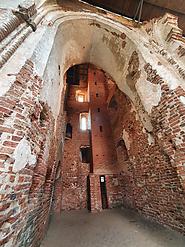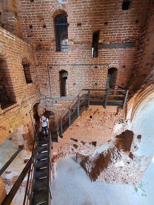 Maloniai pasivaikščioję po muziejų keliaujame į lauką ir judame link laiptų, kurie veda aukštyn į atrodančiais pavojingai atrodančius griuvėsius.