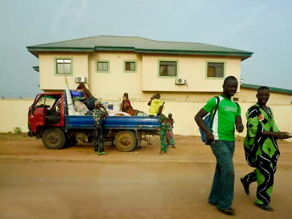 Gyvenama Nigerijos dviejų aukštų nuomojamose namuose trumpai tariant taip: yra vienas žmogus, kuris daro valgyti ir valo pirmą aukštą, kitas skalbia (pastoviai tenka aiškinti, kaip reikia skalbti, nes visada pridaro nesąmonių) ir valo antrą aukštą. Yra du žmonės (pakaitomis), kurie atidaro vartus mašinai, bei yra du vairuotojai.
