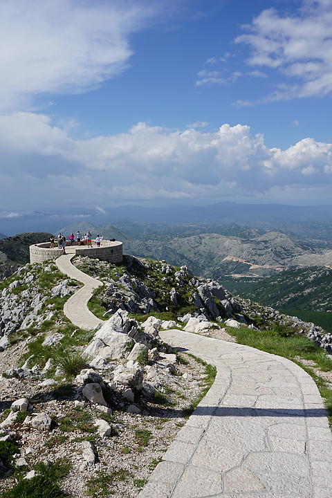 Padarome kažkiek nuotraukų, tačiau ir taip aišku, kad nuotraukos neperteiks viso vaizdo, tai tiesiog sėdime ir gėrimės. Nors pats kalnas nėra net 2 km aukščio, tačiau nuo jo matai jūrą, todėl tas aukštis atrodo kitoks, nes dažniausiai būnant kalnuose, šalia esantys kalnai būna panašaus aukščio ir sunku pasakyti kaip auštai tu esi, o čia kai matai jūrą iškart aišku kaip aukštai virš jūros lygio iškilęs kalnas. Grožimės ir tęsiam kelionę, grįžti planuojame per Kotoro kopėčias.