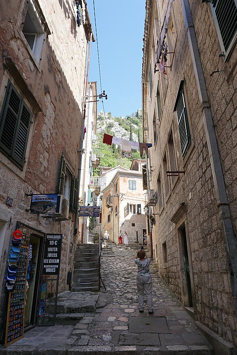 Ant sienos galima užlipti ir pasigrožėti miesto vaizdais, taip pat pasiekti kalno viršuje esantį fortą ir pasigėrėti įlanka. Mūsų viešnagės metu lauke buvo gana aukšta temperatūra ir lipti iki forto 1500 laiptelių nebuvo didelio noro, tačiau buvome iš anksto suplanavę lipti todėl slinkdami palei namus ir slėpdamiesi šešėliuose priėjome iki bilietų kioskelio. Čia mūsų kelionė siena ir baigėsi. Pernai bilietas į sieną kainavo 3 eurus, šiais metais 8, mes tuo labai pasipiktinome, be to buvo karšta, įlanką jau matėme nuo Kotoro kopėčių ir nusprendėme, kad šiandien nekepsime kaitrioje saulėje už 32 eurus.