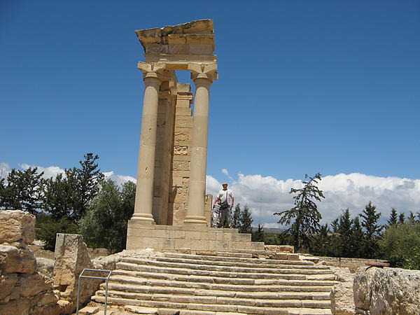Užsukome į Apolono šventyklos griuvėsius (2,5 Eur). Oficialus vietos pavadinimas Sanctuary of Apollo Hylates. Ši šventykla buvo viena svarbiausių senovės Kipre. Jos istorija siekia 2000 m. prieš Kristų. Šventykloje buvo garbinamas vyrų vaisingumo dievas Hylates. Po to nuvažiavome į Kuriono (Kourion) senovės Kipro miesto griuvėsius (4,5 Eur). Oficialus pavadinimas Archaeological site of Kourion. Ši diena – tikrų tikriausia Kipro griuvėsių diena. Gal vienai dienai ir per daug griuvėsių, bet geriau juos apžiūrėti, aplankyti ir vėliau koncentruotis į kitus kultūrinius objektus. Kuriono miestas išsidėstęs ant kalvos, nuo jo aplinkui viskas puikiai matosi: ir jūra, ir kalnai. Gražu, bet labai vėjuota, net kepures vėjas nupūsdavo nuo mūsų galvų. Turiu pripažinti, kad griuvėsiai (vėl kartojuos) labai įspūdingi. Yra išlikusių romėniškų pirčių, baseinų, gerai išsilaikiusių mozaikų, man labiausiai patiko Kuriono teatras, kuris yra veikiantis, jame iki šiol vyksta įvairūs renginiai.