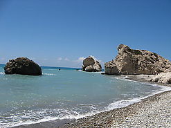 Kitą rytą sėdome į Honda ir išmynėme prie Afroditės uolos Petra tou Romiou. Pagal graikų mitologiją ši vieta yra grožio ir meilės deivės Afroditės gimimo vieta. Nuo Pafos ji nutolusi apie 25 km (tarp Pafos ir Limasol miestų). Auto palikome tam skirtoje nemokamoje aikštelėje, o į paplūdimį patekome per specialų tunelį, iškastą po keliu. Vieta man patiko, vaizdai gražūs, uolos įspūdingos, pliažas akmenuotas. Aišku, nusimetėme rūbus ir pliūkštelėjome į jūrą. Sako, kad reikia apiplaukti apie Afroditės uolą, bet aš tam nesiryžau, nes vanduo vėsokas, užteko tiesiog pasimaudyti prie kranto. Žmonės sako, kad apiplaukus aplink uolą, galima tapti vaisingu, atjaunėti ir tapti laimingu. Kas tiki – prašom, bandykite. Aš esu skeptiškas šiuo atžvilgiu. Čia nebent saviįtaiga gali suveikti ir padėti pasiekti laimės. Gerai, kad tai būtų taip paprasta: nuskridai į Kiprą, apiplaukei aplink uolą ir namo grįžai jaunas, laimingas ir dar priedo vaisingas (kam aktualu). Garantuoju, būtų populiariausia vieta visame pasaulyje…