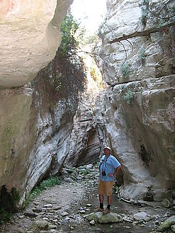 Ryte kėlėmės labai anksti ir 6 val. išvažiavome į Avakaso tarpeklį Avakas Gorge. Pakeliui trumpam užsukome prie Agios Georgios cerkvės, bet ji buvo uždaryta. Nieko nuostabaus, juk buvo ankstus rytas. Toliau pavažiavome iki vietos, kur baigėsi asfaltuotas kelias. Jeigu važiuojate su 4 ratais varomu automobiliu, tai galite privažiuoti iki pat tarpeklio pradžios. Mes su savo Honda nerizikavome, todėl iki tarpeklio ėjome apie 20 min. pėsčiomis. Avakas Gorge randasi Akamas pusiasalyje. Visas pusiasalis yra nacionalinis parkas, jame negyvena žmonės ir nėra asfaltuotų kelių. Pusiasalyje išlikusi nepaliesta, natūrali gamta. Ėjome vienui vieni, nei vieno turisto, saulė buvo tik pakilusi ir dar nekaitri. Mėgaudamiesi vienatve ir vaizdinga aplinka, pasiekėme tarpeklio pradžią. Takas per tarpeklį yra apie 2,5 km ilgio, jo dugnu pastoviai teka upelis, kartais jame būna tiek vandens, kad pasivaikščiojimas tampa neįmanomas. Mūsų atveju vandens buvo ne per daugiausiai. Stačios akmenuotos sienos iš abiejų pusių siekia 80 m aukštį, o siauriausioje tarpeklio vietoje jo plotis siekia truputį daugiau negu 3 metrus. Ten jautiesi kaip siūlas, praveriamas pro adatos skylutę. Kažkas panašaus. Šokinėjome nuo akmens ant akmens, stengdamiesi nesušlapti kojų. Akmenys vietomis labai slidūs, reikia avėti gerus batus. Vaikams čia vaikščioti griežtai nerekomenduočiau. Tarpeklis – graži, rami, idiliška vieta, kurios ramybę drumsčia tik stačiose uolose burkuojantys balandžiai ir saulėje besikaitinantys driežai. Na, siauriausioje vietoje saulės nebuvo, bet ji nėra labai ilga ta siauriausia vieta. Nors ji man patiko labiausiai, ypač atkarpa su kabančiu akmeniu. Galingas akmuo kažkada krito žemyn ir jam per siaura buvo nusileisti iki dugno, todėl jis taip ir liko kaboti ore įsispraudęs tarp sienų. Vaikščiojant galima rasti retų augalų, gėlių, bet reikia nepamiršti saugotis krintančių akmenų. Juk ten viršuje ganosi laukiniai kalnų ožiai, ir jie sukelia akmenų griūtis. Toliau einant tarpeklis praplatėja ir ėjimas tampa nebe toks įdomus: tiesiog ropštiesi nuo vieno didelio akmens ant kito ir žiūri, kad kojos neišsisuktum. Atgal grįžome tuo pačiu keliu, todėl galima sakyti, praėjome tarpeklį du kartus. Kelionė pirmyn atgal – apie 2,5 val. Atrakcija tikrai verta dėmesio, rekomenduoju aplankyti Avakas Gorge. Tikrai nesigailėsite.