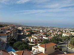 Nemaloniai nustebino tai, kad praktiškai iš karto pradėjo lyti, ir ne šiaip lyti, bet konkrečiai pilti kaip iš kibiro. Gatvėmis upeliai plaukė, na, ir mes plaukėme kartu. Tikrai ne toks oras, kokio tikėjausi Kipre. Šiap taip nuvažiavome į miestelį Pegeia šalia Coral Bay pliažo. Nuo Pafos iki Pegeia apie 15 km. Sunkiai, bet radau apartamentus „The Club Coral View”, kuriuos buvau užsakęs per www.alpharooms.com. 2 bedroom Townhouse Self Catering apartamentai 14 dienų kainavo 728 Eur. Ofisas buvo užrakintas, bet ant durų paliktas tel. Nr. Paskambinau ir už kelių minučių atvažiavo vadybininkas. Užpildėme ofise dokumentus, davė raktus nuo namo ir palinkėjo gero poilsio. Chatą gavome tikrai gerą – tai buvo dviejų aukštų kotedžas, pirmame aukšte erdvus kambarys su buitine technika, pilnai įrengta virtuvė su visais pribumbasais ir net skalbimo mašina, tulikas, taip pat ir galinga terasa su iš koto verčiančiu panoraminiu vaizdu į jūrą. Terasa buvo tokia didelė, kad joje su vaikais žaisdavome futbolą. Antrame aukšte buvo 2 miegamieji su atskirais tualetais bei voniomis bei su balkonu kiekviename kambaryje. Gyvenimo sąlygos tiesiog puikios. Mašiną laikėme šalia namo prie pat durų. Tą patį vakarą nuvažiavome į parduotuvę „Lidl“ apsipirkti pradžiai visko po truputį. Kainos tikrai nesikandžiojo. Bet, galiu pasakyti, kad tai buvo pirmas ir paskutinis kartas, kai pirkome maistą „Lidl“. Žinote kodėl? Ogi todėl, kad vietiniai supermarketai („Papantoniou“ arba „Philippos“) pasirodė žymiai geresni už tą „Lidl“ tiek prekių asortimentu, tiek ir kainomis. Grįžę į chatą išsikrovėme daiktus, įsikūrėme ir ramiai vakarojome gurkšnodami vietinius alkoholinius gėrimus. O lietus taip ir lijo visą likusį vakarą…Langų sandarumas čia tikrai kelia daug abejonių, nes per stiprų lietų net pro pilnai uždarus langus vanduo bėgo į vidų. Mažai jie čia mato to lietaus, todėl ir į sandarumą pro pirštus žiūri.