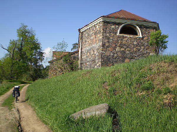 Pusė devynių ryte, aš Gustonyse. Išlipus iš traukinuko, pereinu bėgius ir plentu Šiauliai-Panevėžys minu iki Berčiūnų, kur už Nevėžio upės suku į dešinę. Kelios minutės po devynių privažiuoju Panevėžio nuotakų valymo įrenginius. Apvažiuoju iš kairės ir truputį pasiklydęs, tarp pušų ir nedidelių kalnelių pamatau, kaip vėliau sužinojau, Eidrigevičių šeimos koplyčią. Tai Nevėžninkų kaimų teritorijos. Kaimų būta bent keturių, tuo pačiu pavadinimu, su daug dvarų, abiejuose Nevėžio upės pusėse. Koplyčia buvus didelė, graži, akmeninė su griūnančiose lubose orginalių freskų fragmentais, visiškai apleista :(…mūsų paveldas. Netoli koplyčios aptinku senus, taip pat apleistus, pastatus, panašu, kad dvaro kumetynas. Pačio dvaro, skaičiau internete, neišliko. Išlindus iš miškelio, toli, horizonte, matosi didinga Naujamiesčio bažnyčia (ta patį rudenį abu bokštai, vargonai ir dar daug vertingo paveldo suniokojo ugnis). Važiuoju laukų keliuku link Upytės. Netoli miestelio Memenčių kaime, apžiūriu 1861 metais statytą koplytėlę. Upytėje pasivaikščioju po Čičinsko kalną, apžiūriu 1878 metais statytą medinę Šv. Karolio Baromėjaus bažnyčią, nepriklausomybės paminklą (kryžių). Toliau asfaltuotu keliu, su neintensyviu eismu, besigrožėdamas sodraus geltonumo pienių ir rapsų laukais, minu link Ėriškių. Pakeliui, Stultiškių kaime, apžiūriu vėjo malūną – linų muziejų. Kalnelio miške akį džiugina, užvartų pilnas, maloniai natūralioje aplinkoje, Rudupėlio upelis. Sėdu ant miško keliuko krašto, veiziuos į upelį, klausau paukštelių ulbėjimo, ilsiuosi, užkandžiauju, žodžiu – kaifuoju :)…štai taip:).