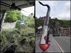 Toliau – Dinantas. Na, tikrai labai įspūdingas miestelis didžiulės uolos fone. Ant tilto mus pasitinka saksofonų maketų eilės – nelabai jie čia skoningai atrodo, bet pasirodo, šiame mieste gimė saksofono išradėjas – Adolfas Saksas.