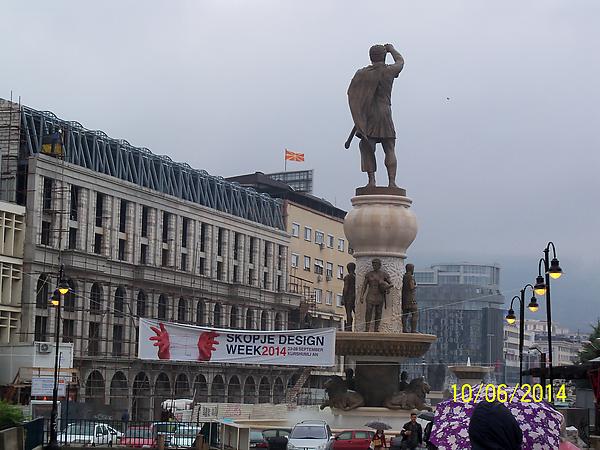 Kadangi šalyje gyvena makedonai ir serbai, turkai ir čigonai, albanai ir dar daugelis kitų skirtingų tikėjimų, kultūrų tautų – todėl ir kultūrinis palikimas čia labai margas. Skopjėje, palikę už durų batus, apžiūrėjome Osmanų imperijos laikų mečetę; gidas, kažką neaiškiai burbėdamas sau po nosimi, ilgai mus laikė lietuje prie tvirtovės, menančios Bizantijos laikus; tamsiomis ir purvinomis gatvėmis, kuriose plaikstosi sukabinti rytietiški kilimai, atėjome iki buvusio užvažiuojamojo kiemo – karavan-sarajaus; Ir štai miesto centras, reprezentacinė aikštė…staiga visiems atvėpsta žandikauliai. Pamirštamas net bjauriai merkiantis lietus. Skopjė savo užmojais perspjovė ir Paryžių, ir Prahą, ir Romą kartu sudėjus. Tokio miesto dar nemačiau. Visur aplink, kiek tik akys aprėpia, tarp statomų ir jau pastatytų modernių pastatų, ant tiltų – skulptūros, milžiniškos, masyvios, tupintys, gulintys akmeniniai liūtai, carai, karžygiai, didvyriai, paukščiai ir dar bala žino kas…. skulptoriams – aukso amžius…. Tai ne gražu, tai košmaras, bet kažkodėl labai linksmai ir smagiai nuteikia. Mes visi išsišiepę, atkritusiais žandikauliais nespėjome dairytis. Mūsų žioplinėjimais vis taikė pasinaudoti vietiniai ilgapirščiai…. kai nuvydavome, paskui vis tiek sekdavo iš paskos.