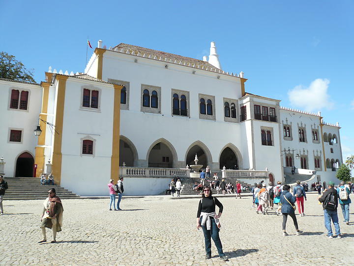 Super atrakcija. Kupini teigiamų emocijų tuo pačiu pėsčiųjų taku nusileidome žemyn atgal į Sintrą. Savo žygį pradėjome 11.00 val. ryte, o 17.00 val. jau buvome miesto centre prie Sintros nacionalinės pilies Palacio Nacional de Sintra.
