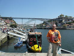 Labai faina iš viršaus stebėti upe zujančius laivelius, kylančius ir besileidžiančius funikulierius ir atsipūtusius vietinius bei turistus. Nors dar tik gegužės pradžia, bet turistų jau pakankamai daug, įsivaizduoju, kas čia darosi sezono metu. Pasimėgavę nuostabiais Porto vaizdais iš viršaus, žengėme ant tilto Ponte de Dom Luis I, kurį suprojektavo Gustavo Eifelio studentas. Viršutinė tilto dalis skirta tik pėstiesiems ir metro traukiniams. Šios zonos nėra atskirtos, kai važiuoja traukinys, jis duoda įspėjamąjį signalą, sulėtina greitį ir pėstieji praleidžia metro, pasitraukdami arčiau tilto kraštų. Traukinys pravažiuoja ir žmonės vėl ima blaškytis po visą tilto viršutinį aukštą. Mes sustojome per tilto vidurį ir jau kitu kampu mėgavomės super panorama. Nuo čia matėsi daugybė vyno rūsių, kurių iškabos didelėmis raidėmis išpieštos ant vyninių stogų. Rajone Vila Nova de Gaia suskaičiavome apie 15 portveino rūsių. Tai ir Calem, Sandeman, Ramos Pinto, Ferreira, Taylor´s, Croft, Offley, Graham´s, Cockburn´s ir t.t. Jau iš pavadinimo aišku, kad portveinas yra kilęs būtent iš Porto miesto. Portveinu gali vadintis tik toks vynas, kurio vynuogės užaugusios Douro upės, kertančios Porto miestą, slėniuose. Portveino pagrindinės rūšys: Ruby – tai raudonasis portveinas, brandinamas didžiulėse statinėse kelis metus; Tawny port – auksinis, brandinamas mažos talpos ąžuolo statinėse apie 3 metus, dėl medienos ir didesnio kontakto su oru įgaunantis specifinę auksinę spalvą; Branco – iš žalių vynuogių gaminamas baltasis portveinas ir Rose – jaunas, mažai brandintas rožinis portveinas. Aišku, yra ir daugiau rūšių, nes portveino gamintojų yra gana daug, ir jie turi savo specifines rūšis.