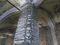 Aplankėme gotikinio-manuelistinio architektūros stiliaus bažnyčią Igreja de S. Francisco ir ten pat esančią kaulų koplyčią Capela dos Ossos (4 Eur žmogui, į kainą įeina ir sakralinio meno muziejus), kuri yra labiausiai lankomas Evoros objektas. Koplyčios statybą XVII a. inicijavo trys Pranciškonų vienuoliai, kurių tikslas buvo perteikti žinią, kad žmogaus gyvenimas yra trumpas ir trapus. Apie tai byloja ir virš įėjimo į koplyčią besipuikuojantis užrašas „Mes, kaulai esantys čia, laukiame Jūsų atvykstančių kaulų“. Sienos ir aštuonios koplyčios kolonos yra „dekoruotos“ 5 tūkst. žmonių kaulais ir kaukolėmis, o lubos išpieštos mirtį reprezentuojančiais simboliais. Vieta nuteikia niūriai ir slegiančiai. Bet toks ir buvo vienuolių tikslas. Suaugusių žmonių ir vaikų skeletai tik patvirtina, kad mirtis nesirenka, visi prieš ją lygūs.
