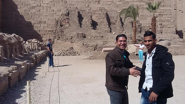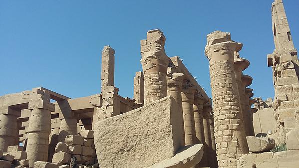 Čia vaikščiojome Karnakos šventovėje – viename iš pačių didžiausių šventovių kompleksų pasaulyje. Jis buvo lipdomas kaip kregždžių lizdas, kiekvienas faraonas pastatydavo vis ką nors naujo, kiekvienas norėjo įamžinti save. Pietinėje komplekso dalyje yra šventasis ežeras, o visai netoliese, ant postamento stypso turistų labai pamėgta vabalo skarabėjaus skulptūra. Trokštantys palaiminimo žmonės turi apeiti apie šitą skulptūrą septynis ratus. Jeigu paisysime senovinės legendos, šitas vabalas gali įgyvendinti visus troškimus, netgi priburti vyrą.