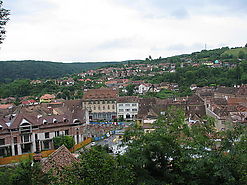 Pabuvę iki pietų Sigišoare (aišku čia būtų ką veikti ir visą dieną), važiuojame į Sibiu. Aplinkui siaubingai juodi debesys, o iš jų vis išlenda žaibai. Meldžiamės, kad jie mus kaip nors pasistengtų aplenkti (vakare per visagalį internetą, sužinome, kad Rumunijoje šiandien žaibas nutrenkė du lenkų turistus). Nuvažiavę į Sibiu pakeliui pamatę turgų nusprendžiame sustoti, nusipirkti vaisių ir daržovių. Prisiperkame : trešnės, persikai po 1 Eu, pomidorai po 0,50 EU. Aišku ne tik kainos, bet ir skonis ne lietuviškas.