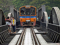 Apžiūrinėjam vietinę įžymybę, geležinkelio tiltą per Kwai upę.