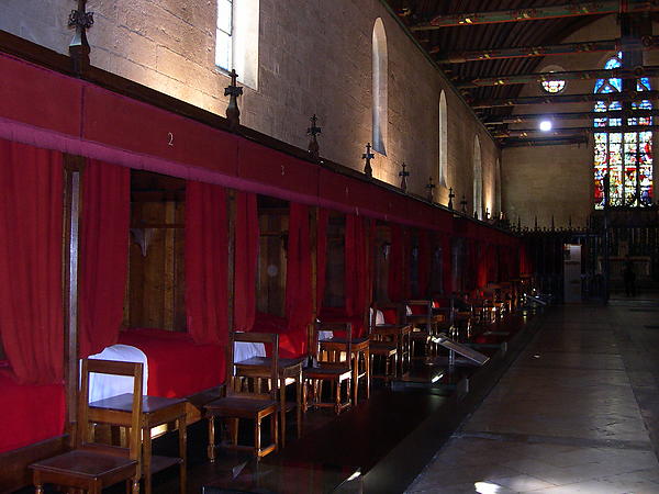 Pirminis tikslas – papusryčiauti. Truputį pasivaikščioję, nutarėm užeiti į pirmą patikusią užkandinę, taip ir padarėm. Užsisakėm po didelį karštą sumuštinį (3,5 euro) ir didelį puodą kavos. Sumuštinius vaikinas čia pat pašildo ir atneša, o bandelės, kurios naudojamos sumuštinių gamyboje, kepa gretimoje krosnyje. Matyt jiems ryte atveža pusfabrikačius iš kepyklos, o jie patys išsikepa, nes tokios didžiulės elektrinės krosnys stovi kiekvienoje užkandinėje. Užkandinėje tik keletas staliukų, bet žmonės pastoviai keičiasi, kas laikraštį paskaito prie kavos puodelio, kas pusryčiauja, kaip mes, kas šiaip pasisveikinti užeina, visi vieni kitus pažįsta neskaitant mūsų, žinoma. Pavalgėm sočiai, skaniai ir nebrangiai, dabar laikas ir apie dvasinį peną pagalvoti, eisim ieškoti Hospices-de-Beaune. Neiškenčiu neužėjęs į vyno parduotuvę. Vyno galybė, kainos nuo 3 iki 100 eurų, pavadinimai nieko nesako (ne žinovas aš), o ir pardavėjos konsultacija negalioja (tik prancūziškai). Pasiimu vieną patikusį butelį sau, dar vieną vietinio likerio dovanų, kaip iš Burgundijos be Burgundiško vyno. Kitoj parduotuvėj prisiperku dižono garstyčių (Dijon už 30 km). Centrinėje miesto aikštėje vyksta turgus. Daugiausiai daržovės, vaisiai, prieskoninės žolės, bitininkystės produktai. Žmonių nemažai, žmonės maitinasi šviežiais produktais ir jokių supermarketų nereikia. Nusiperkam turgelyje apvalią lininę staltiesę, nekinietišką, vietinės gamybos (grįžus į Lietuvą reikėjo lininių pakulų, tai Lietuvoj savų nėra, tik prancūziškos) ir einam ieškoti Hotel-Dieu. Mums reikalingi spalvoti stogai matosi iš daug kur, bet nuorodų jokių nėra. Jeigu daiktas neveikia – paskaityk indtrukciją, taip ir mums, porą kartų apėję visą senamiestį ir išlandžioję visus užkaborius, galų gale nuėjom į TIC. Ten gavom dar vieną planelį su pažymėtu įėjimu, bet mes jau šiandien ten buvom kokius tris kartus ir nieko neradom. Pasirodo įėjimas iš tos pačios turgaus aikštės, tik ten vyksta kažkoks remontas, tai vartai liko po statybiniais pastoliais, o nuoroda nieks nepasirūpino. Na negi lįsi į kažkokias statybas, pasirodo, reikia. Įlindom. Nusipirkom bilietėlius (atrodo 23 eurai mums kainavo), pasiėmėm aprašymus ir nuėjom pasižiūrėti tos senosios ligoninės. Tikrai graži ir įdomi ekspozicija. Nustebino tai, kad ligoninė pastatyta virš upelio, o vienos salės grindyse palikta skylė į kuria mesdavo visas atliekas, kurias tas upelis ir nunešdavo už miesto ribų, kas būdavo toliau niekam nebeįdomu. Prisižiūrėjom visokiausių baisių chirurginių instrumentų ir vaistų, pagamintų ir visokio š…. ir kitų panašių dalykų. Ekspozicijos pabaigoje, kaip visada, suvenyrų parduotuvėlė, ir vyno, žinoma, bet vyną ligoninėj pirkti kažkaip ranka nekilo.. Į mašiną grįžom apie 13.00, laikas būtų ir toliau važiuoti. Paliekam senąjį Beaune, lendam į E 21. Kitas sustojimas jau Provance…